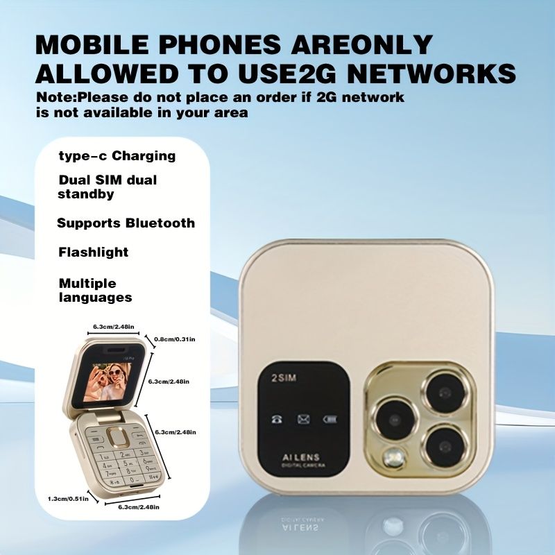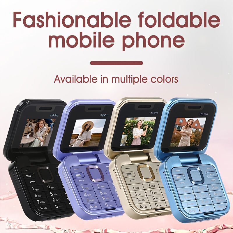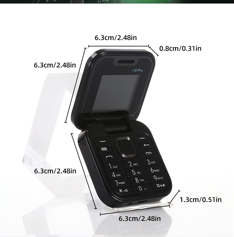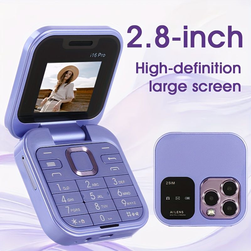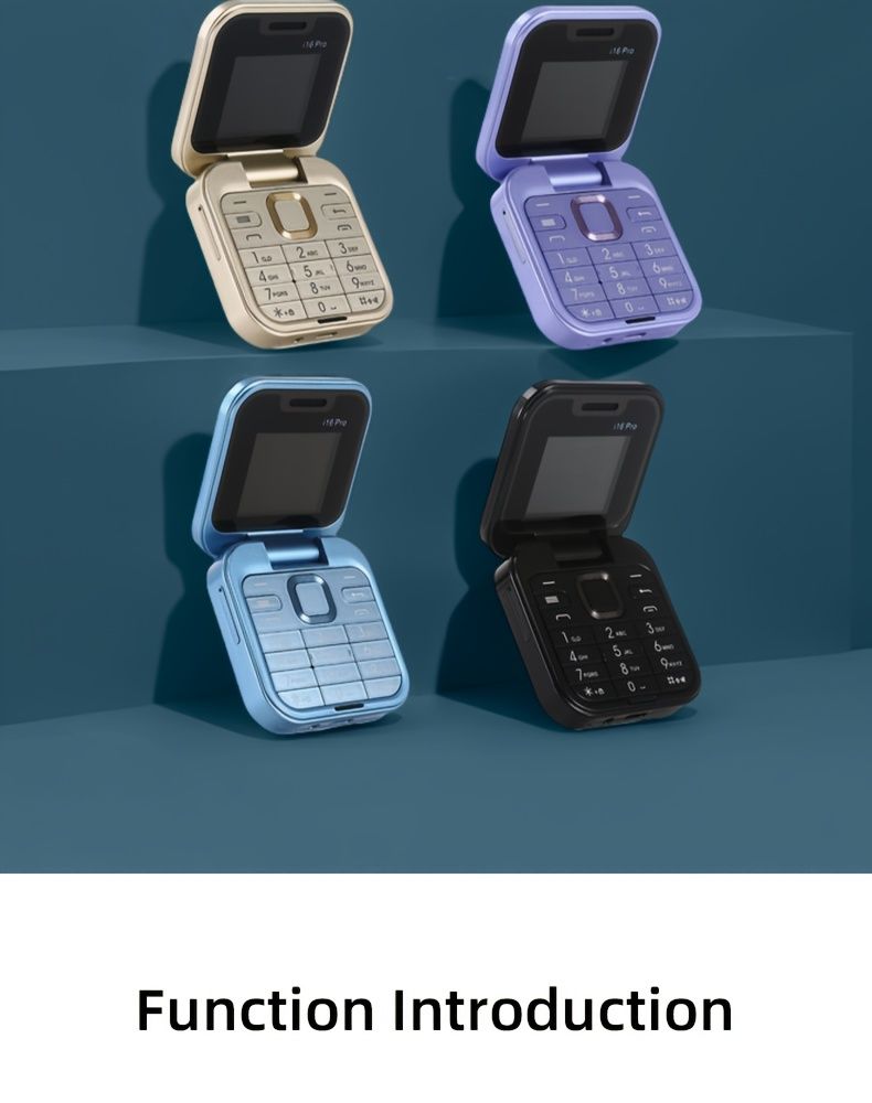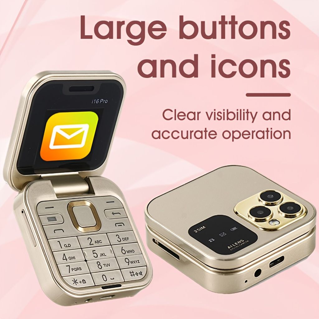 i16pro Mini Flip Phone, Supports 2G Network Dual SIM, 150 Hours of Standby Time, Multifunctional Small Phone, Quick Light Switch Key, Supports Multiple Language Switching, Mini Games, MP3 Music, FM Functions